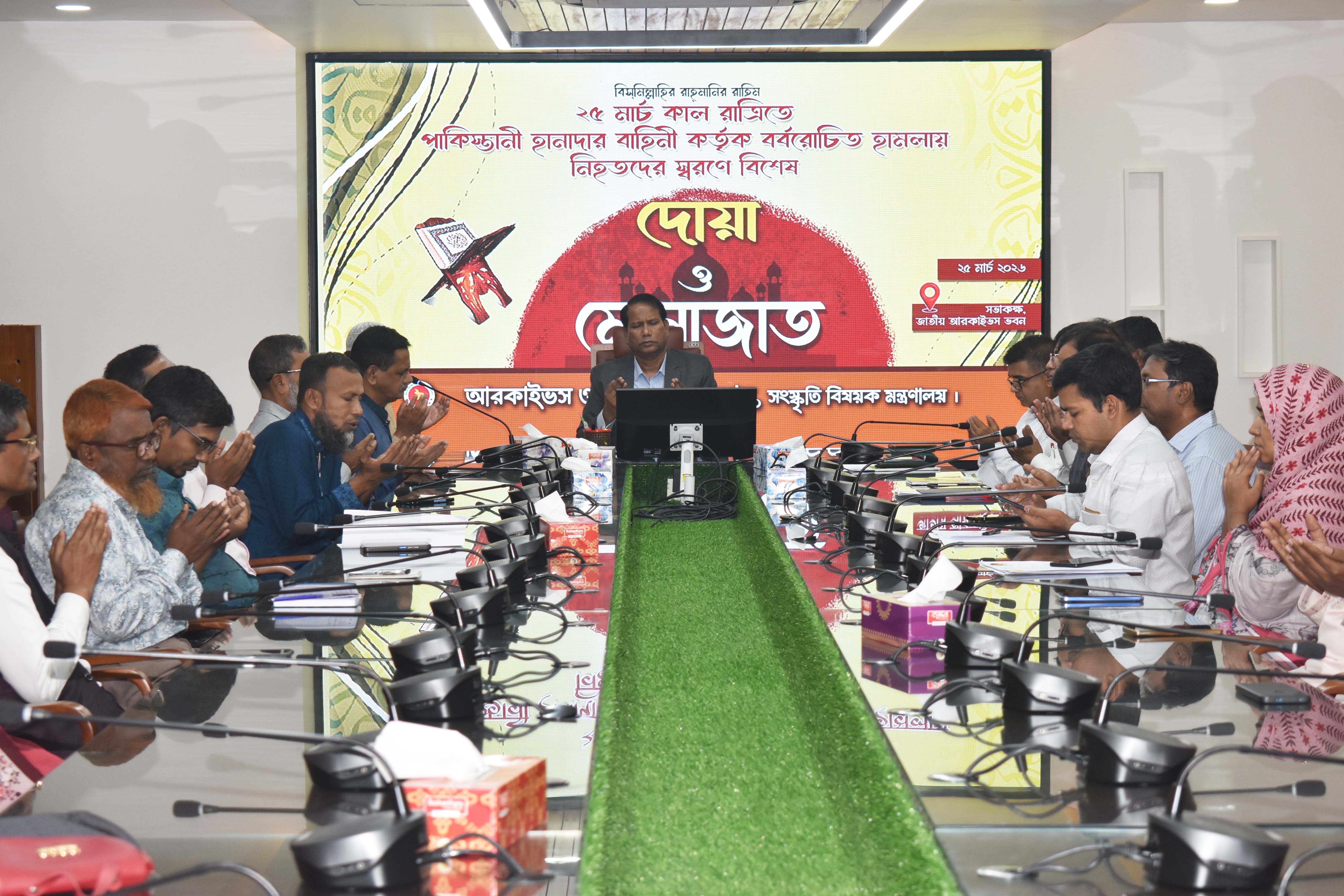 ‘২৫ মার্চ গণহত্যা দিবস ২০২৬’ উপলক্ষ্যে আরকাইভস ও গ্রন্থাগার অধিদপ্তর কর্তৃক নিহতদের স্মরণে বিশেষ মোনাজাতের আয়োজন।