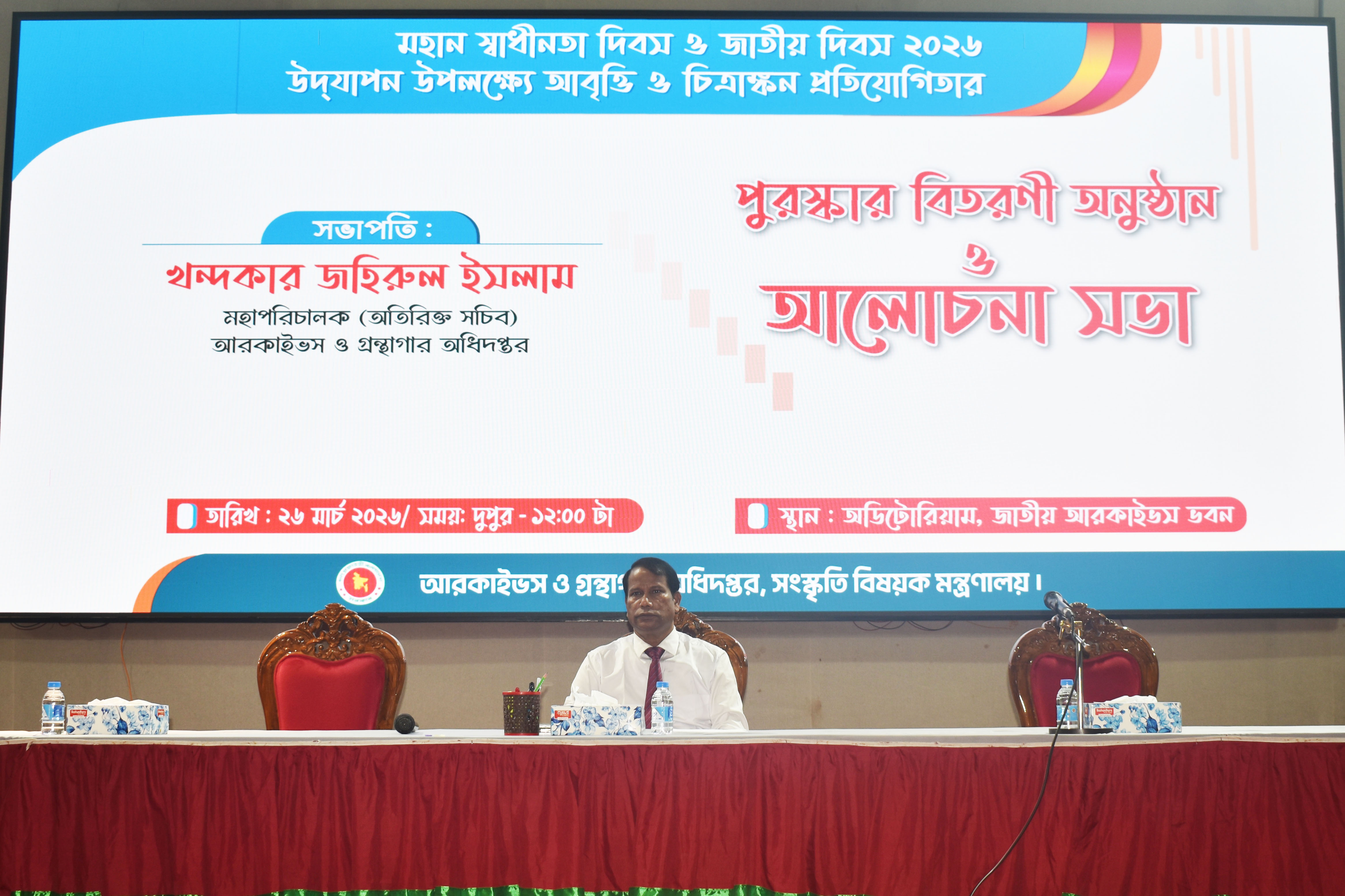 ‘২৫ মার্চ গণহত্যা দিবস ২০২৬’ উপলক্ষ্যে আরকাইভস ও গ্রন্থাগার অধিদপ্তর কর্তৃক স্মৃতিচারণ ও আলোচনা সভার আয়োজন।