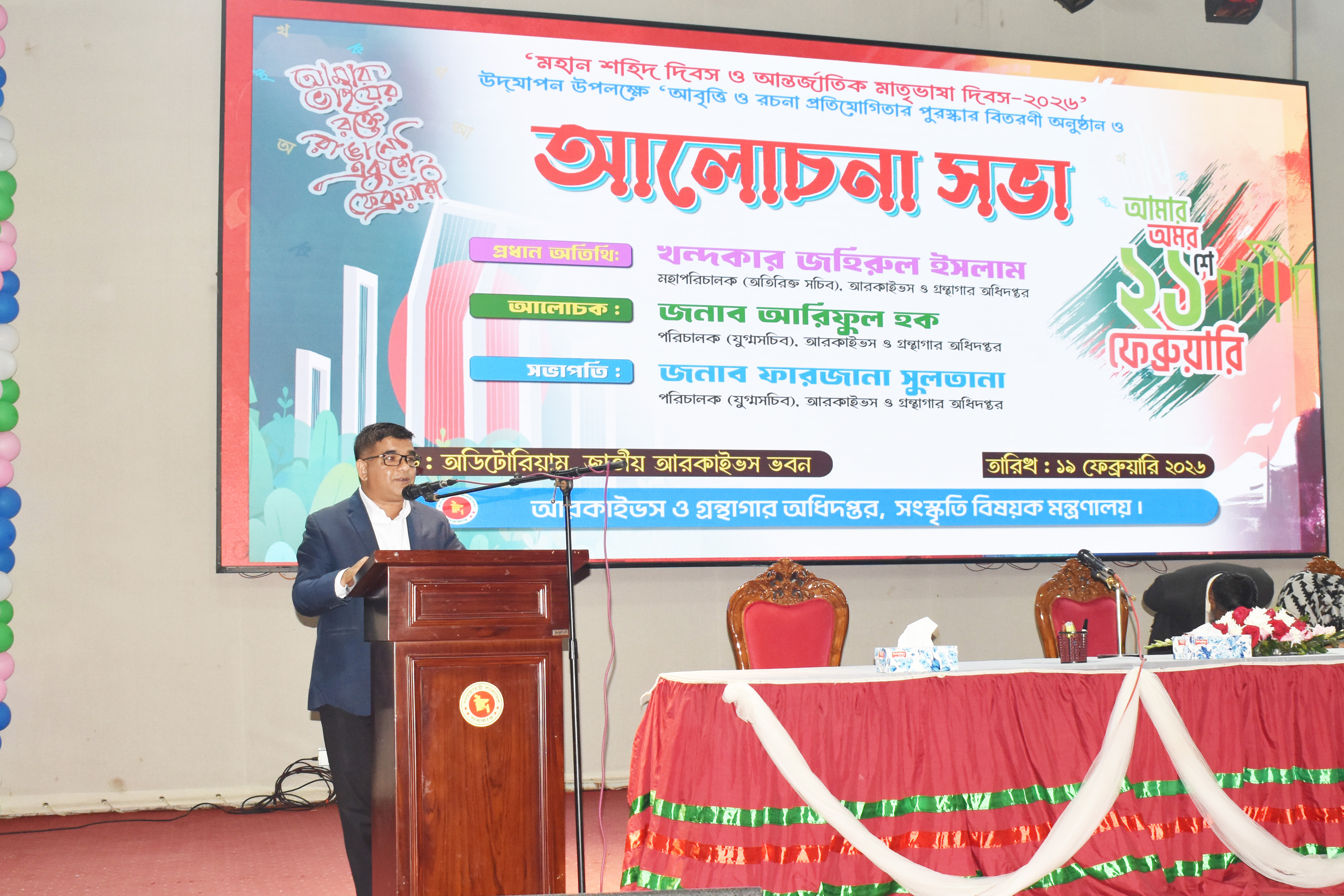 মহান শহিদ দিবস ও আন্তর্জাতিক মাতৃভাষা দিবস-২০২৬ উদযাপন উপলক্ষ্যে ১৯ ফেব্রুয়ারি ২০২৬ তারিখ আবৃত্তি ও রচনা প্রতিযোগিতার পুরস্কার বিতরণী ও আলোচনা সভা।