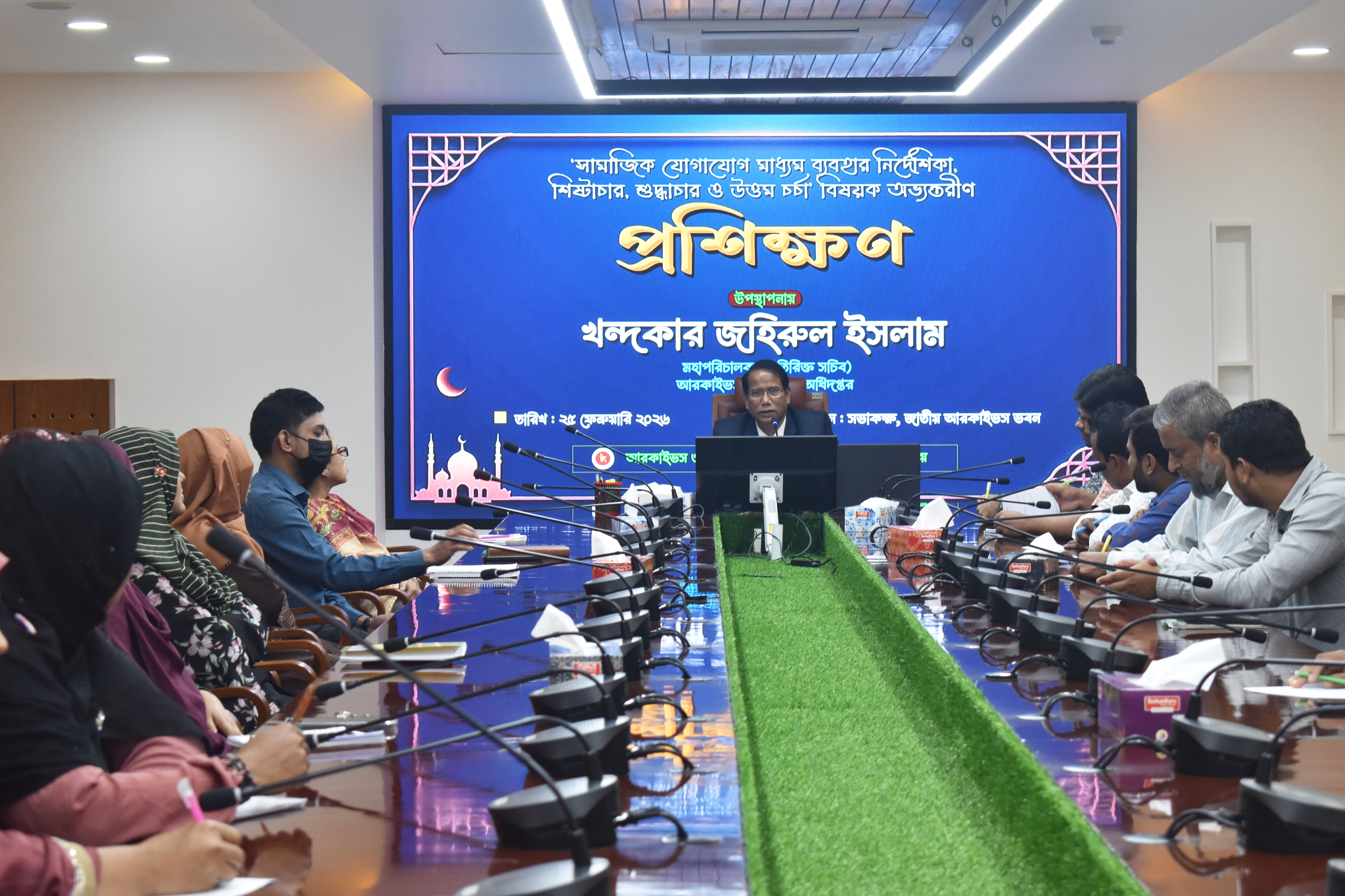 ২৪-২৬ ফেব্রুয়ারি ২০২৬ তারিখ ০৩ (তিন) দিনব্যাপী প্রশিক্ষণের ২য় দিন ১৪ষ্ঠ-১৬তম গ্রেডের কর্মচারীদের (আউটসোর্সিংসহ) “আইসিটি ও সাইবার সিকিউরিটি, সামাজিক যোগাযোগ মাধ্যম ব্যবহার নির্দেশিকা, শিষ্টাচার, শুদ্ধাচার ও উত্তম চর্চা” বিষয়ক প্রশিক্ষণ।