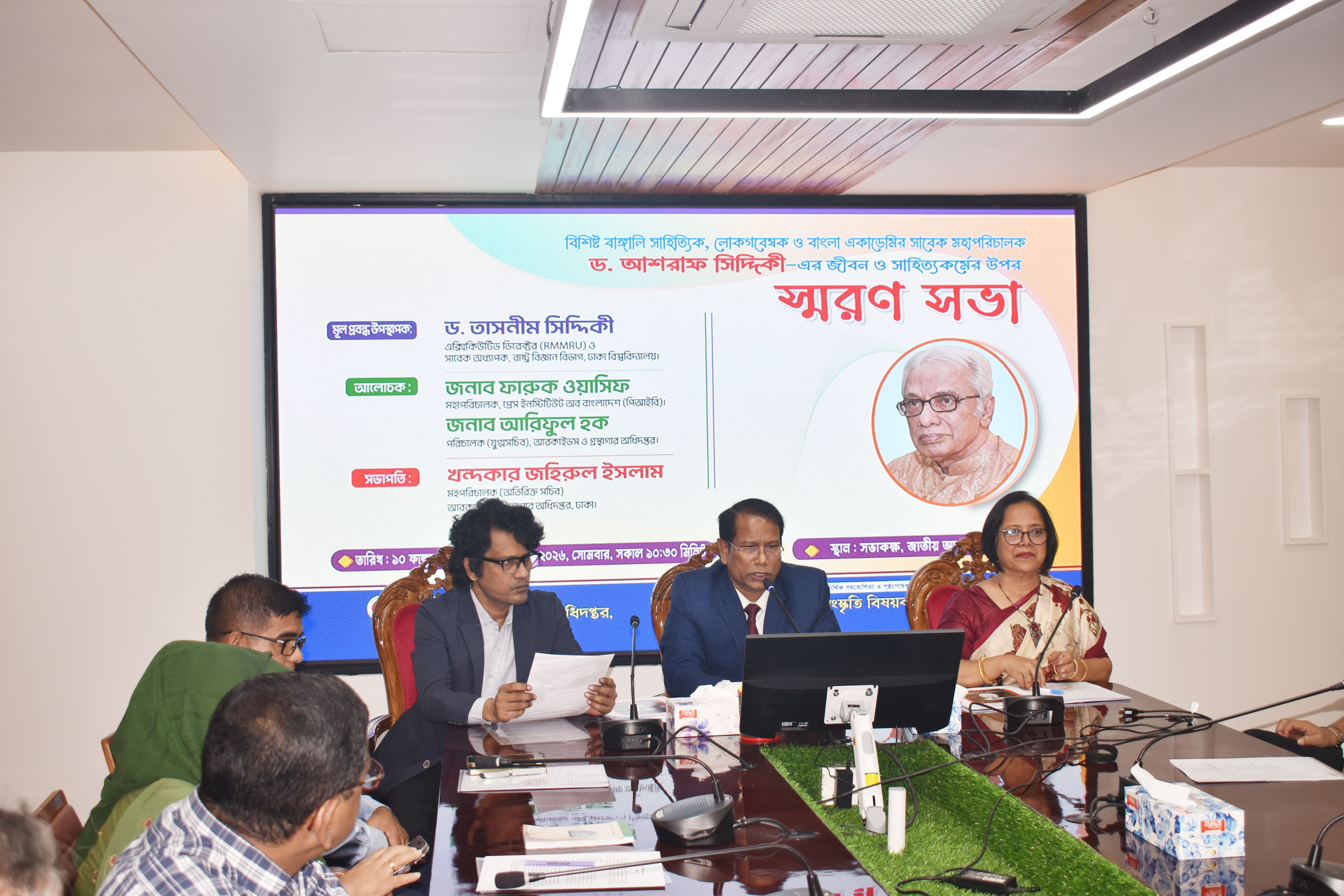 বিশিষ্ট বাঙ্গালি সাহিত্যিক, লোকগবেষক ও বাংলা একাডেমির সাবেক মহাপরিচালক ড. আশরাফ সিদ্দিকী -এর জীবন ও সাহিত্যকর্মের উপর ২৩ ফেব্রুয়ারি ২০২৬ তারিখ স্মরণ সভা।