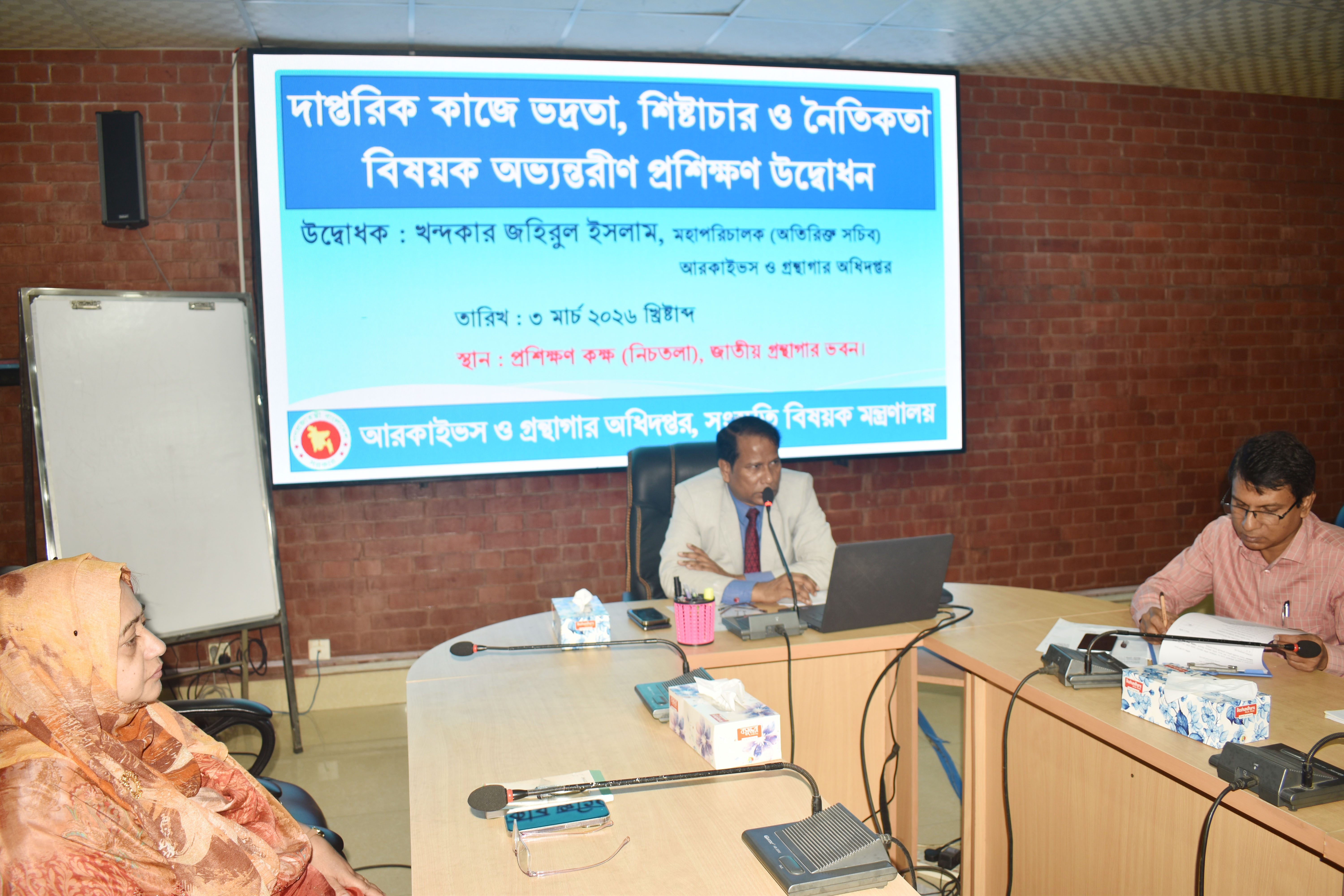 ০৩-০৫ মার্চ ২০২৬ তারিখে ”দাপ্তরিক কাজে ভদ্রতা শিষ্টাচার ও নৈতিকতা” বিষয়ক ০৩ (তিন) দিনব্যাপী প্রশিক্ষণের আয়োজন।