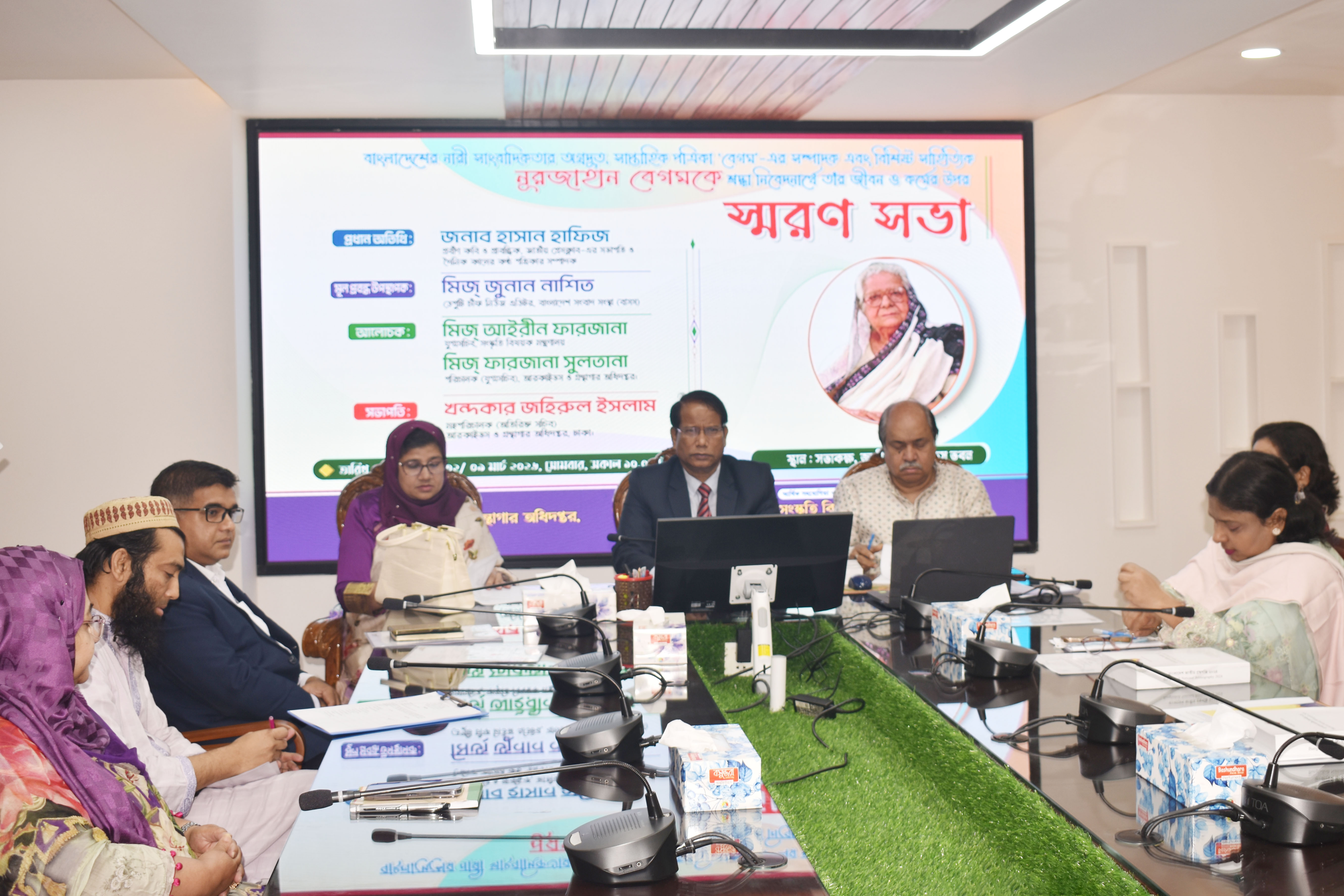 ০৯ মার্চ ২০২৬ তারিখ বাংলাদেশের নারী সাংবাদিকতার অগ্রদূত, সাপ্তাহিক পত্রিকা ‘বেগম’ -এর সম্পাদক এবং বিশিষ্ট সাহিত্যিক নূরজাহান বেগমকে শ্রদ্ধা নিবেদনার্থে তাঁর জীবন ও কর্মের উপর স্মরণ সভা।