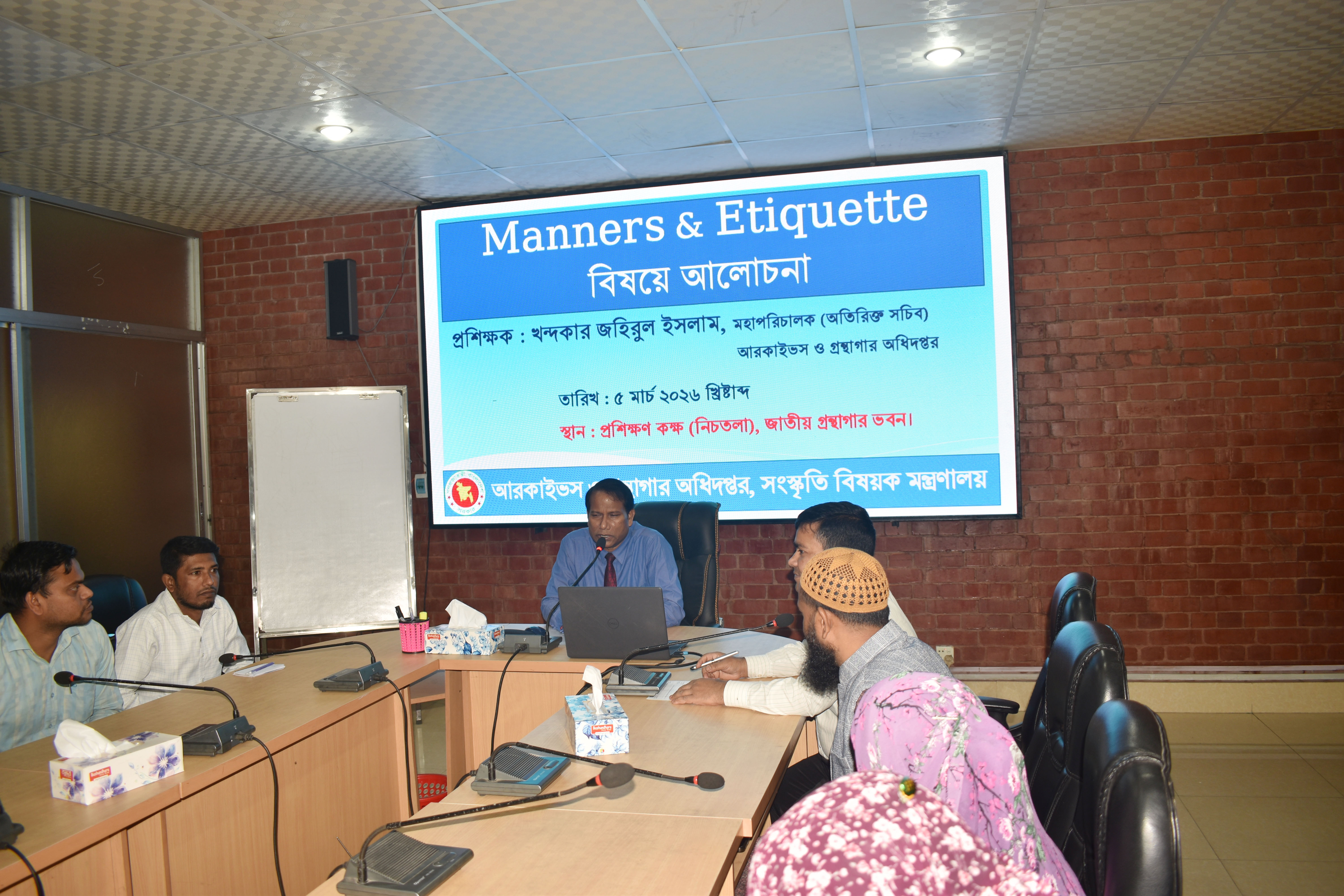 ০৩-০৫ মার্চ ২০২৬ তারিখে ০৩ (তিন) দিনব্যাপী ”দাপ্তরিক কাজে ভদ্রতা শিষ্টাচার ও নৈতিকতা” বিষয়ক প্রশিক্ষণের ২য় দিন।